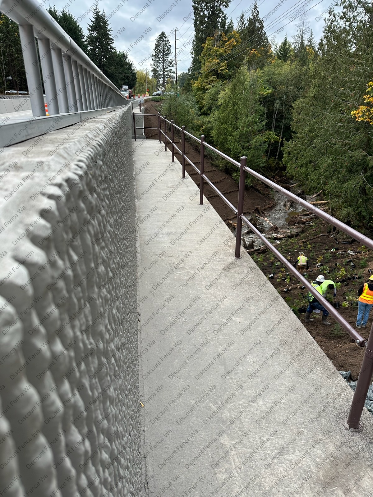 Installed durable, galvanized chain link, fall protection, wildlife exclusion, and wire fencing along sections of the Padden Creek Fish Passage at I-5. Designed for pedestrian and animal safety, visibility, and long-term performance in high-moisture environments.